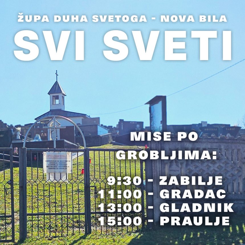 Nakon svake mise izmolit ćemo i opijelo za sve pokojne. Molimo sve naše župljane da ovu obavijest proslijede svim rođacima, prijateljima i poznanicima koji žive vani, a dolaze za Svi svete.